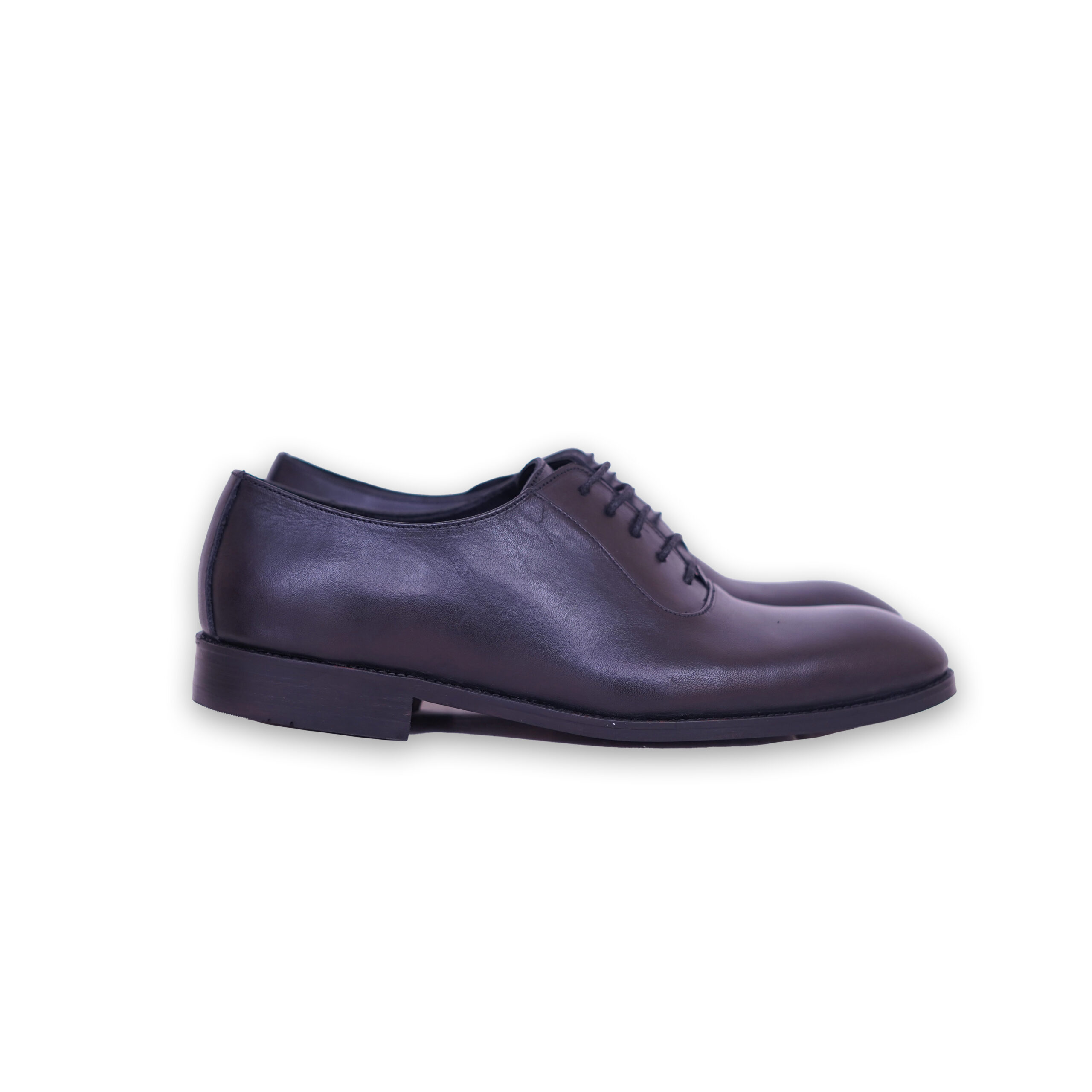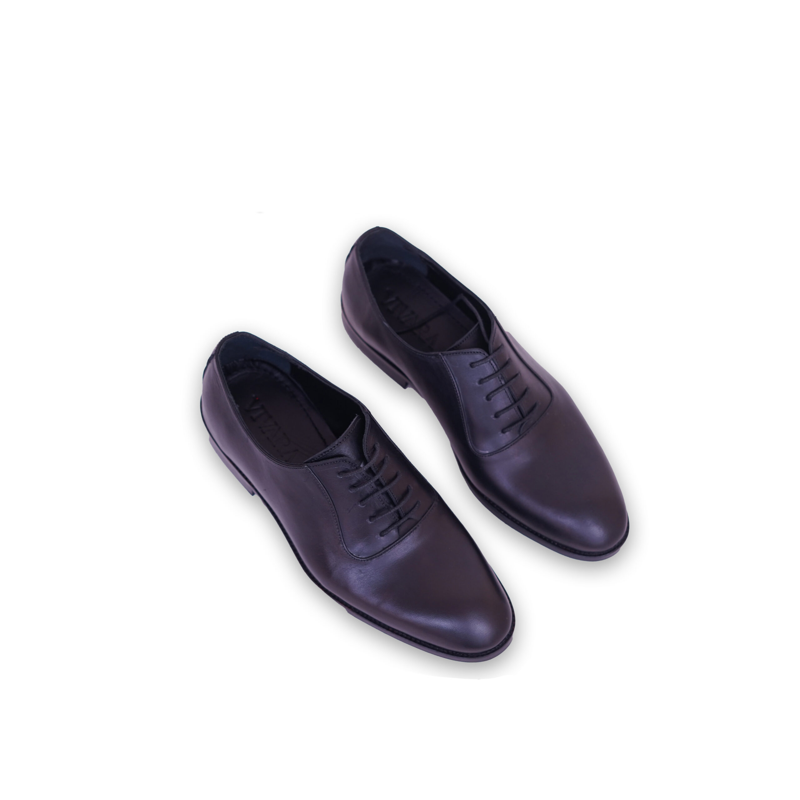 حذاء أوكسفورد رسمي سادة من الجلد الطبيعي باللون الأسود، يتميز بتصميمه البسيط والأنيق بدون أي تفاصيل إضافية، ليعكس مظهرًا عصريًا وراقيًا في آن واحد.